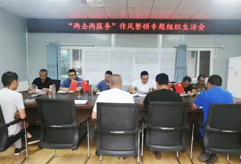 2022月6月9日至10日,第一分公司黨支部分別在都江堰辦公區(qū)、自貢小井支渠工程溝項目部、蟠龍湖水庫樞紐工程項目部召開“兩去兩服務(wù)”作風(fēng)整頓專題組織生活會,一分公司黨支部副書記姜虎主持會議,一分公司班子成員、在崗黨員及非黨員職工代表參加。