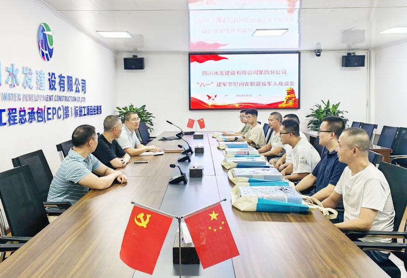 為慶祝中國人民解放軍成立96周年,進一步弘揚擁軍愛軍的優良傳統,持續做好雙擁工作,2023年8月1日,四分公司在亭子口項目部召開慰問在職退役軍人座談會。四分公司副經理、亭子口項目一支部副書記張亮亮,工會主席袁小峰,分公司部分在職退役軍人及青年職工代表參加會議。