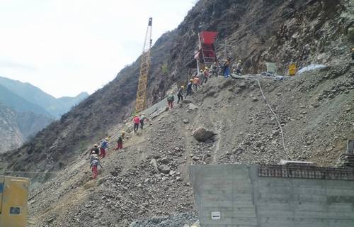 2014年5月14日14:00,固滴電站項目部常務副經理、防洪演練現場總指揮毛偉發出指令:“我部接到監理部轉木里縣氣象局通知,未來一小時內將有一次強降雨,水洛河水位將急劇暴漲,請各工作面所有施工人員迅速撤離現場并轉移現場機械設備及材料”。當聽到指令后,各施工班組在負責人的帶領下,所有人員快速、有序地撤離到指定的安全地點。與此同時,抗洪搶險小組成員在組長鄭中華、張方清的帶領下,迅速進入現場將設備和材料全部轉移至安全地點,最后清點人數。演練結束,整個過程有條不紊。