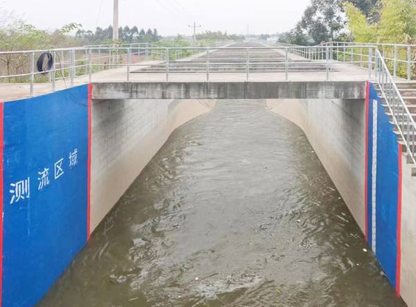 (2024年4月7日上午10:10毗河應急調水運行水頭到達踏水分水閘)