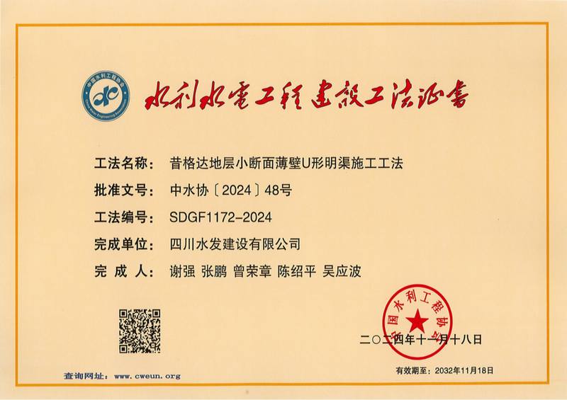 抓科技就是抓發展,謀創新就是謀未來。為貫徹落實習近平總書記來川視察重要指示精神,公司以習近平總書記關于治水的重要論述為指引、以“實現高質量發展要靠科技創新培育新動能”為支撐,在集團領導下不斷探索水利產業科技創新發展路徑。由公司技術中心主持編制的并組織申報的《昔格達地層小斷面薄壁U形明渠施工工法》《基于激光掃描技術的新型針梁臺車長隧洞快速施工工法》《狹窄河谷混凝土高效入倉施工工法》通過中國水利工程協會評審,獲評為2024年度水利行業工法,為公司科技創新再添新成果。接下來,公司將持續推動科技創新成果貫穿工程建設全過程,進一步促進生產科創融合發展,為四川水利高質量發展當好建設排頭兵。