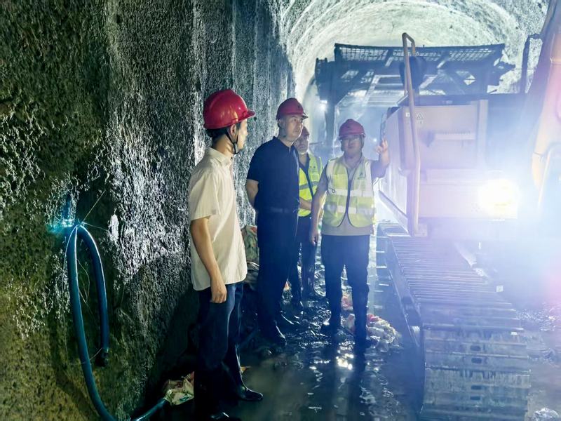 袁斌深入施工一線,實地查看了V標段沱江管橋、黃巔咀隧洞和Ⅳ標段百里沖綜合加工廠、新窩咀隧洞等,了解當前各工區的施工進展情況。施工現場負責人就工程進度、存在問題及應對措施做匯報,袁斌進一步詢問項目下一步施工計劃并提出意見建議。
