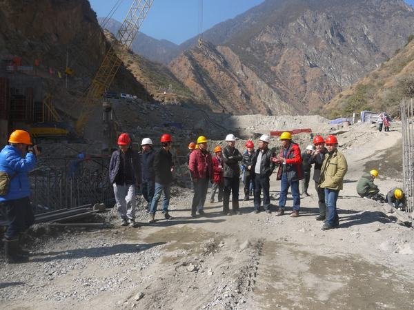 2016年1月19日下午,由華電集團云南魯?shù)乩靖笨偨?jīng)理魏永新、烏江項目公司副總工程師黃鵬、孫華剛、雜谷腦公司辦公室主任李曉莉、梨園電站計劃部主任鄭修軍、華電集團公司項目經(jīng)理邵增富、華電國際四川分公司基建部副主任李宏國、四川公司基建部專責(zé)李勇等人組成的專家組,在水洛河公司固滴建管部主任楊樂、新藏建管部主任何宇、博瓦建管部主任楊杰及固滴設(shè)計、監(jiān)理等一行的帶領(lǐng)下,蒞臨固滴電站首部樞紐工程施工現(xiàn)場對2015年度工程建設(shè)達(dá)標(biāo)投產(chǎn)進(jìn)行檢查,考核內(nèi)容包括現(xiàn)場安全文明施工、土建工程質(zhì)量與工藝,局鑫宏工程公司經(jīng)理毛偉、黨支部書記甘曉華、項目部總工鄭中華全程陪同。