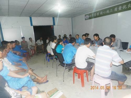 2014年是工程局承前啟后的一年,局勝利召開了 “三代會”和“工作會”。為了全面貫徹學習會議精神,讓職工真實了解全局形勢,在局新一屆領導班子的帶領下,堅定信心,奮力拼搏,努力開創和譜寫工程局改革發展新篇章,2014年5月8日和5月10日,第四工程處在工程非常繁忙的施工黃金時段,利用晚上難得的雨后休息時間,分別在老撾色薩拉龍灌溉項目及遂寧市市城區應急備用水源項目部召開職工大會,貫徹學習局“三代會”和“工作會”會議精神。