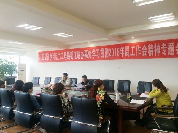 2016年4月12日上午,局都江堰辦事處在水利大廈三樓會(huì)議室召開專題會(huì)議,學(xué)習(xí)貫徹工程局2016年工作會(huì)精神。會(huì)議由都江堰辦事處黨支部書記、工會(huì)主席孫代華主持,辦事處全體職工參加會(huì)議。