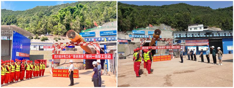 心系職工送清涼,一縷清風入心田。2023年7月25日,四川省水利電力工會副主席張玉奎,水發集團資深高管鄔清富、群團工作部部長馬嵐、副部長李永靜一行,赴亭子口灌區一期工程總承包(EPC)第Ⅰ標段施工項目儀隴縣先鋒鎮二郎村隧洞開展“夏送清涼”慰問及安全監督檢查活動,向亭子口灌區一期工程施工一線干部職工送去防暑降溫物品,將省水電工會、集團的關心送到職工身邊。