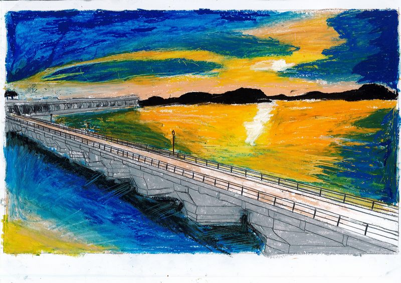 公司成立60周年書畫攝影繪畫類作品二等獎:夕陽下的龍頭山